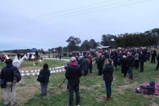 2024年8月4日及び5日、鈴木大使夫妻は、ニューサウスウェールズ(NSW)州カウラ市(注)にて実施されたカウラ・ブレイクアウト(日本人捕虜集団脱走事件)80周年記念慰霊行事に参加しました。日本からは穂坂外務大臣政務官のほか、堀井巌参議院議員、地方自治体関係者、宗教関係者等、およそ100名が参加し、豪州側からは、ビーズリーNSW州総督、マコーマック連邦下院議員(元副首相)、フェイガン・カウラ市長のほか、多数の市民が参加しました。また4日、同行事に先立ち、アルバニージー首相がカウラの日豪戦没者墓地を訪れ、献花を行いました。